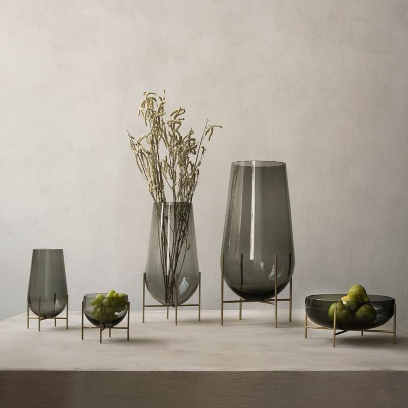 The Echasse Vase combines the classic elegance of a traditional glass vase with a playful, light expression. The word échasse is French for stilts – and this round-bottomed vase is anchored to the table by four slender legs that resemble stilts. The vase takes inspiration from test tubes in laboratories, and like the original the Echasse has a classic drop-like shape, constructed from colored glass that gives the vase a unique expression.