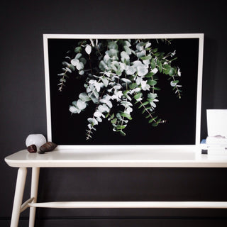 A stunning photographic floral giclee print in black and white. Placement of image may vary per print.