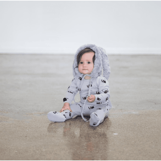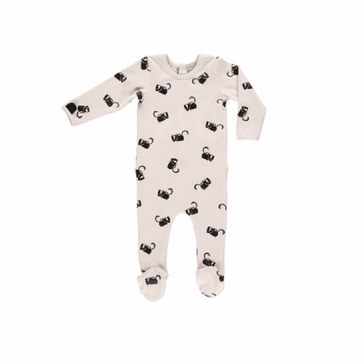 Cozy and ultra soft cotton romper in a cute skunk print with back flap opening for easy dressing and diapering