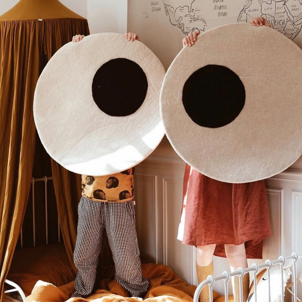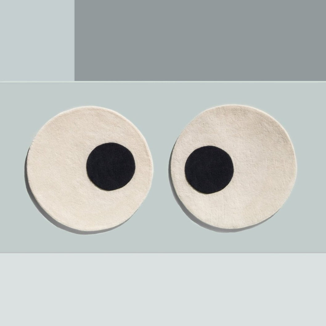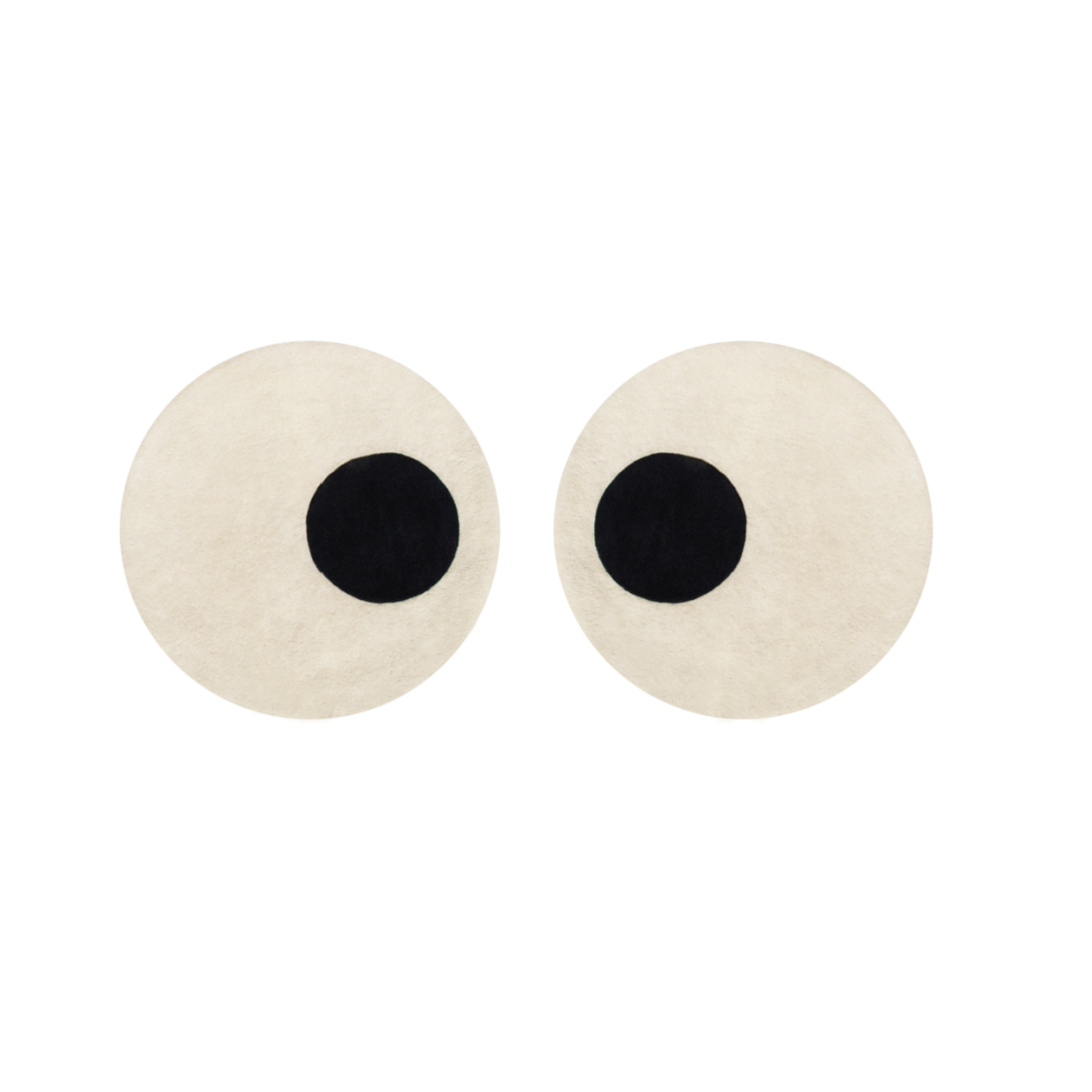 • A playful set of two bold, round shaped rugs. Besides their function as decorative items, the Eye Rugs own a playful element, encouraging imagination. Turn the eyes around to create different expressions. Look left, right, up, dizzy…All eyes on you!