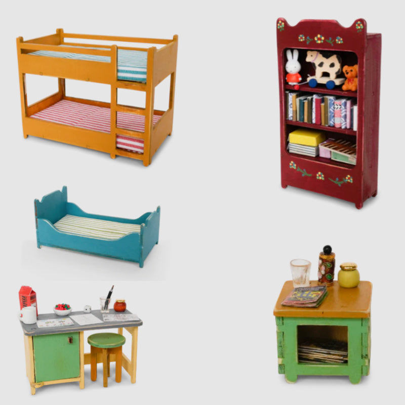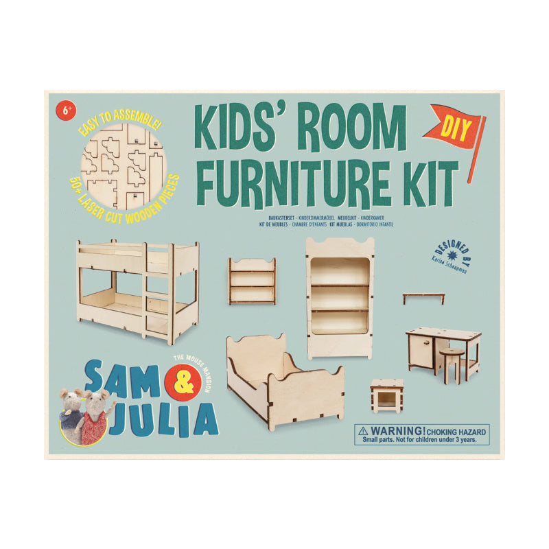 Create a mini kids' bedroom with this furniture kit! The pre-cut wooden pieces can be easily assembled with simple instructions and are 1:12 scale. Based on the Mouse Mansion book series by Karina Schaapman, the kit lets you bring the charming world of Sam and Julia to life. This furniture kit includes a miniature bunkbed, a single bed, nightstand, a desk, a stool, bookshelves, and a cabinet. Paint, glue, and accessories are sold separately.