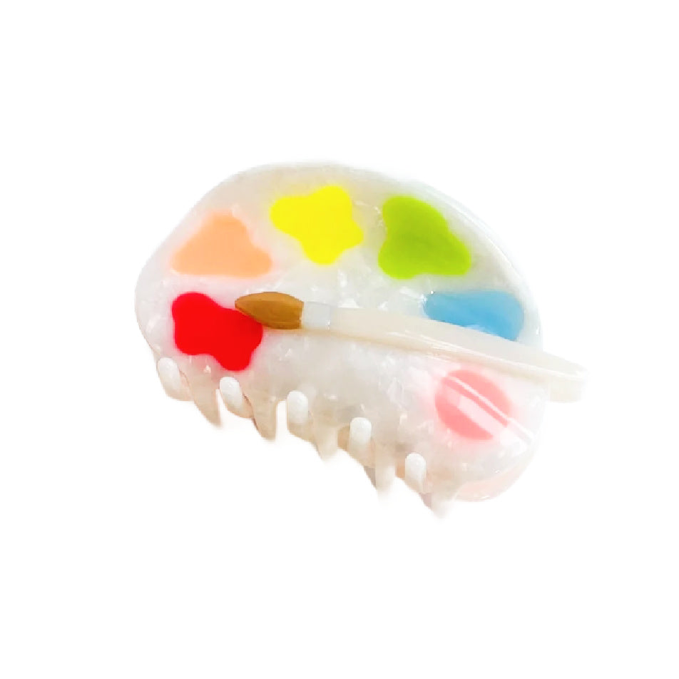 Give those paint brushes that you’ve been using as hair chopsticks a break and upgrade to this adorable paint palette hair claw. Its pearlescent details and vibrant colors make it truly pop! Complete with a 3d paintbrush, this acetate hair claw is just what you need to keep your hair at bay while you create.