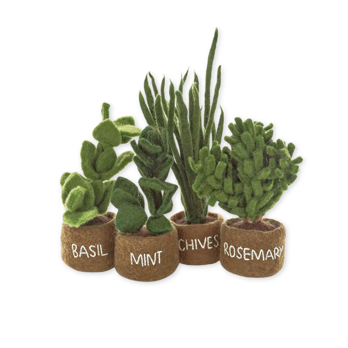 Perfect for adding some greenery to the pretend kitchen, or perhaps a gift for a little cooking enthusiast. These adorable felted herbs will last a lifetime and are made from entirely natural and sustainable materials. Choose from Basil, Mint, Chives, and Rosemary or collect them all!
