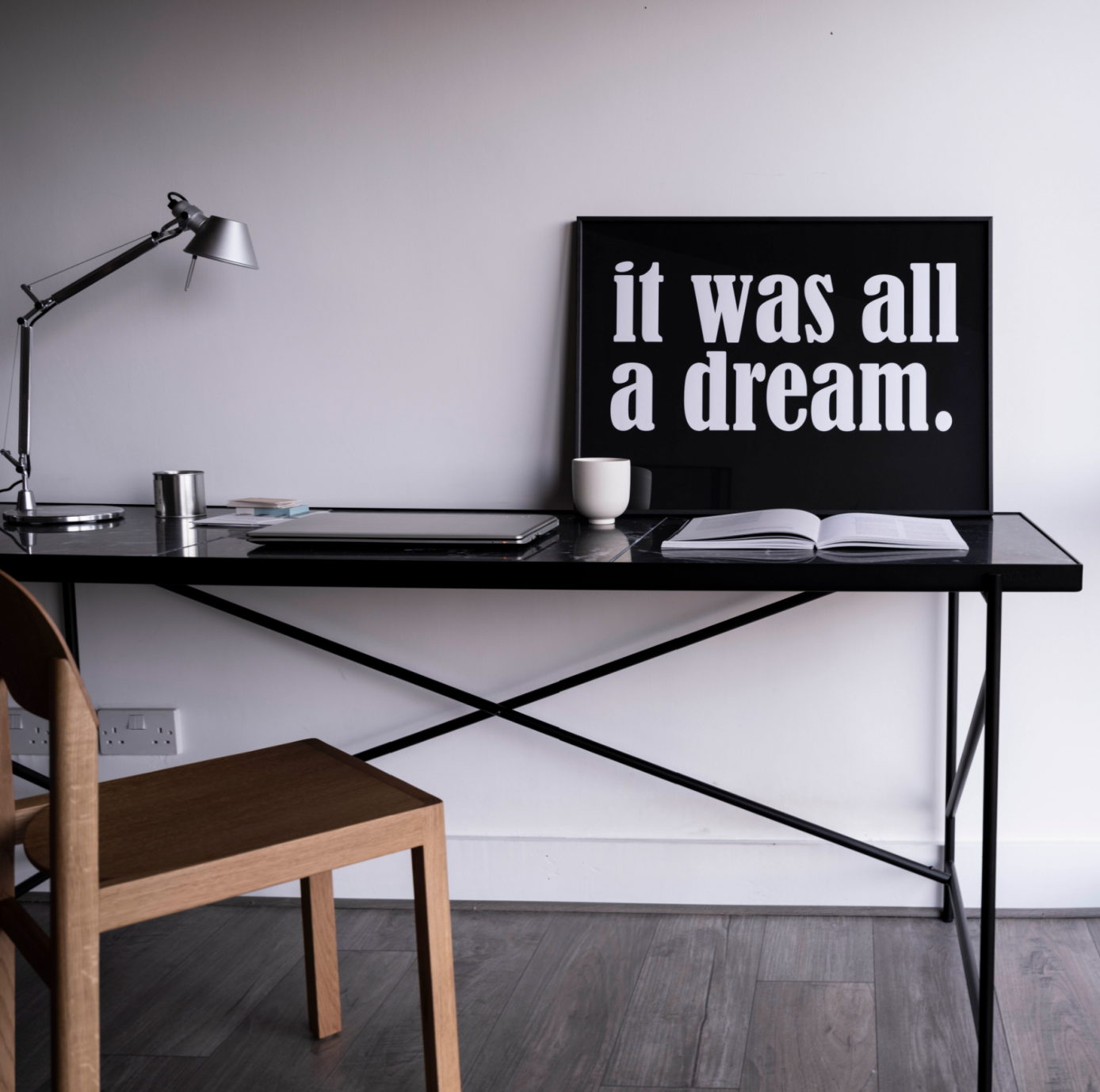Or was it? ‘It Was All a Dream’ is a modern typographical print which we think looks SO good hung over the bed, entryway, office....the possibilities are endless.
