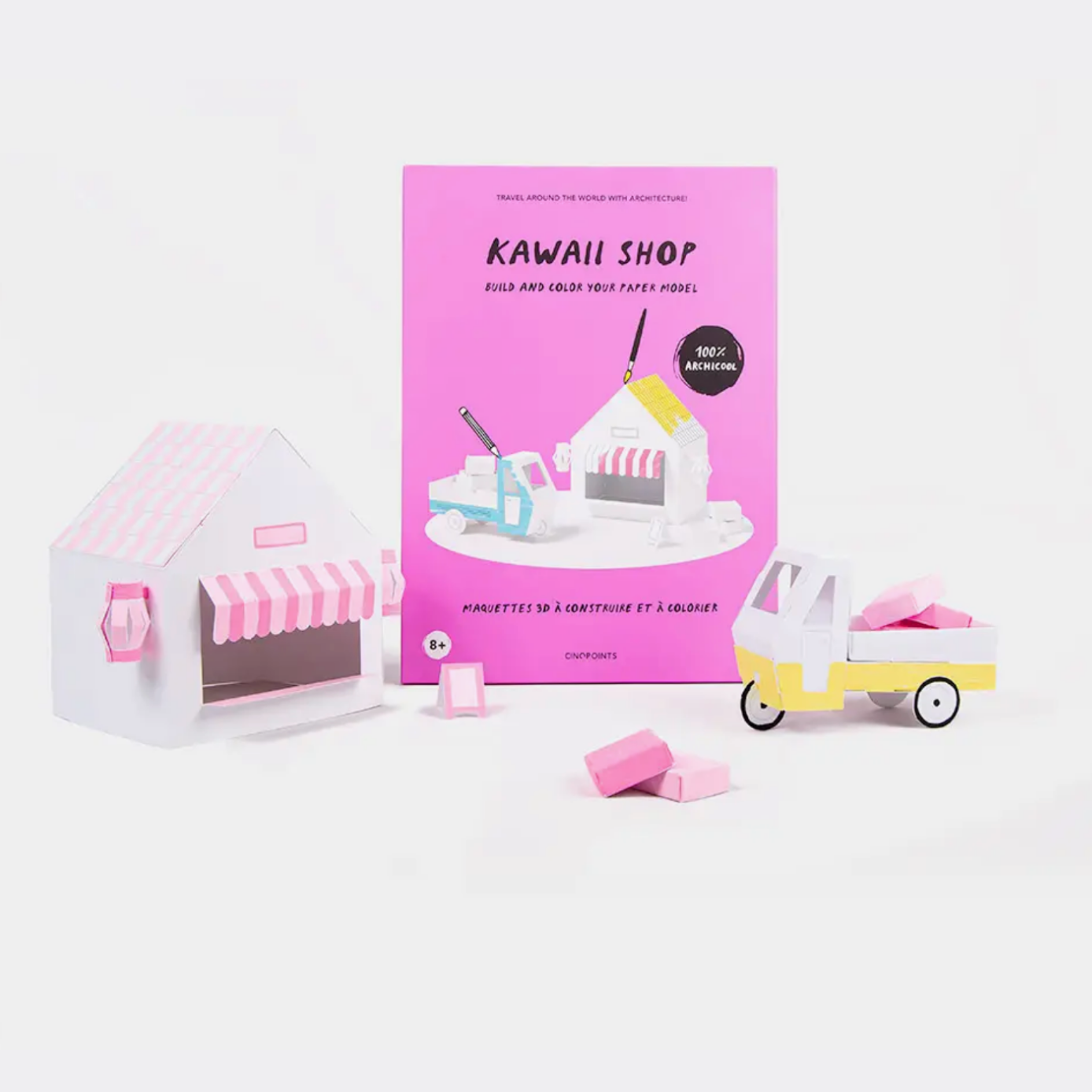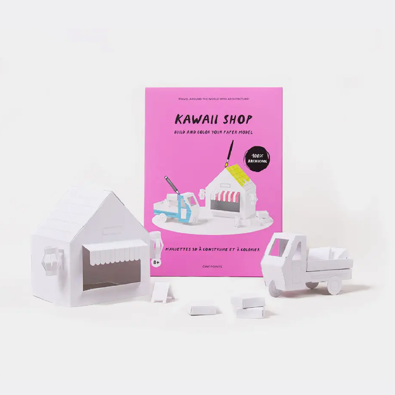 Once colored and built, the models can be kept to play or decorate a room. Without glue and scissors, all models are pre-cut making assembly fairly straightforward and safe from harm. Put the model together, and observe how magical volumes and space are!