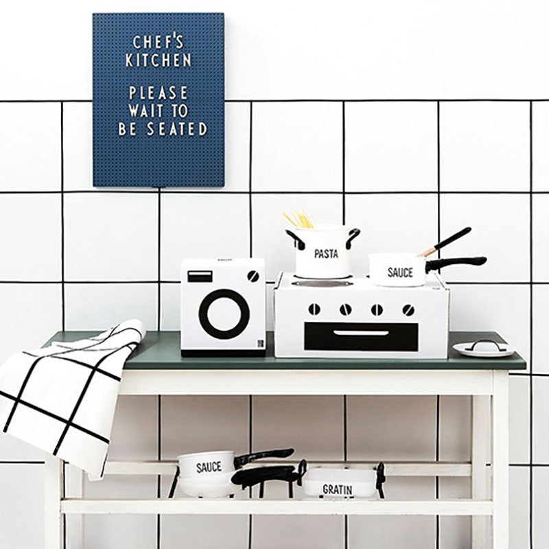 For playing or for the little helper in the real kitchen. The set comes in a cool packaging designed as a washing machine. Save the package for playing! A perfect gift for the little boss and helper.