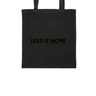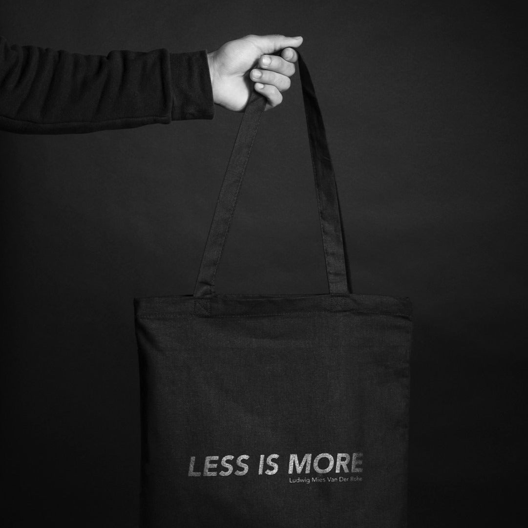 Less is more, but obviously mess is more inside of this bag. Tote bag silkscreen printed in black on a very light black cotton canvas. Light, convenient and archicool, you can take it everywhere.
