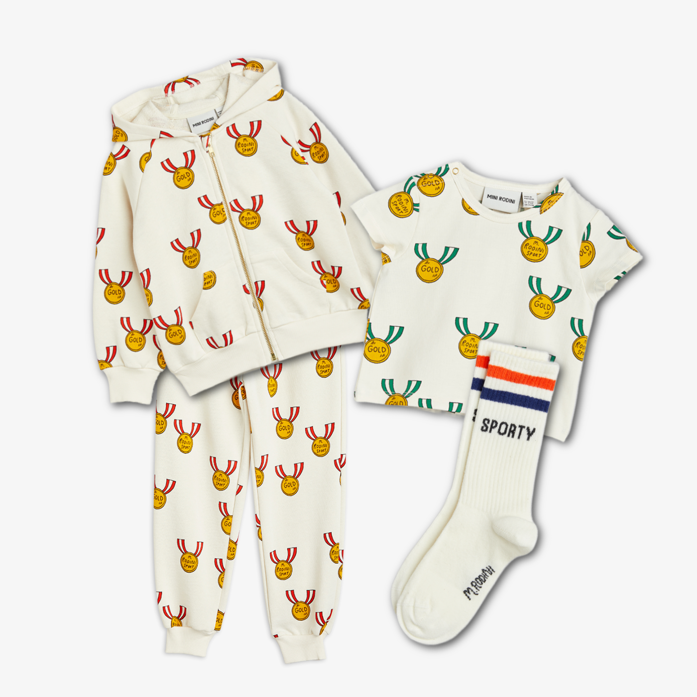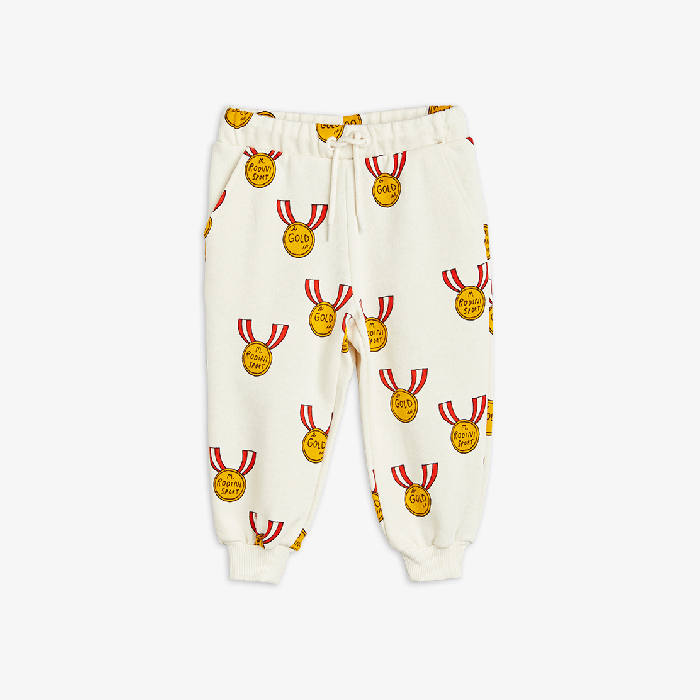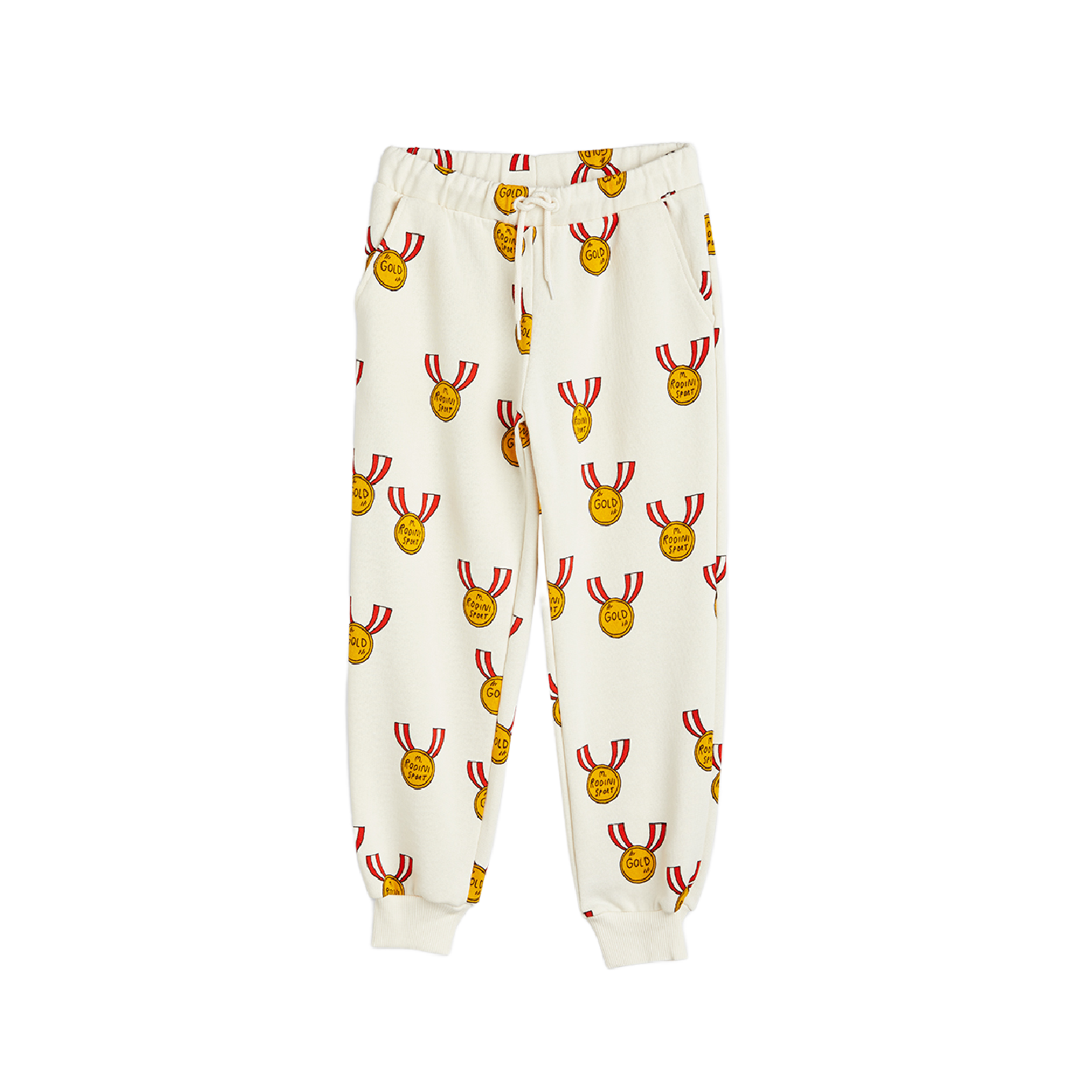 These sweatpants are made from 100% GOTS certified organic cotton and are designed with an all over Gold Medal print, two pockets as well as an elastic drawstring waist. Designed for boys and girls.