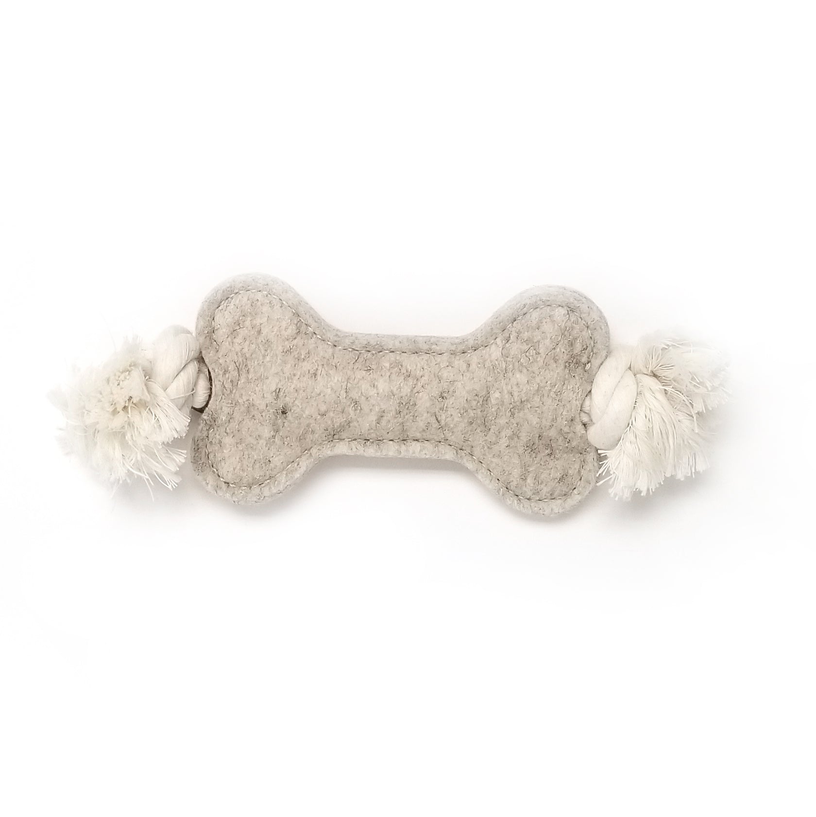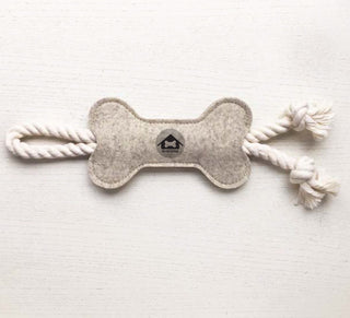 A modern dog toy for the modern home. These beautiful bone shaped toys are made of natural merino wood and 100% environmentally safe materials!