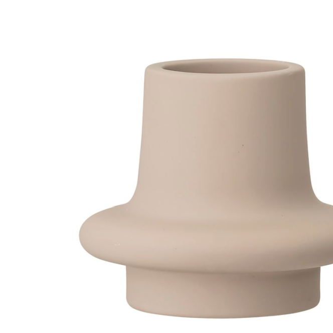 A beautiful and chic tea light candle holder with a wide belly in a sandy stoneware color.