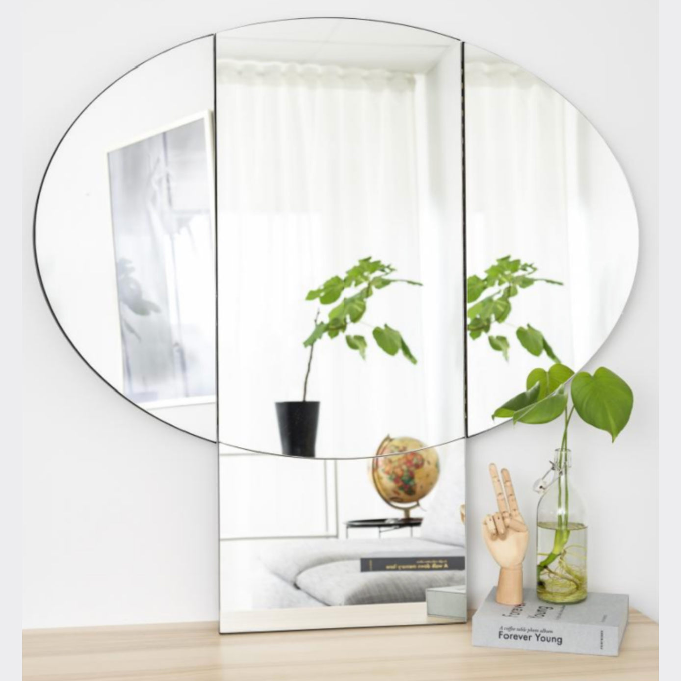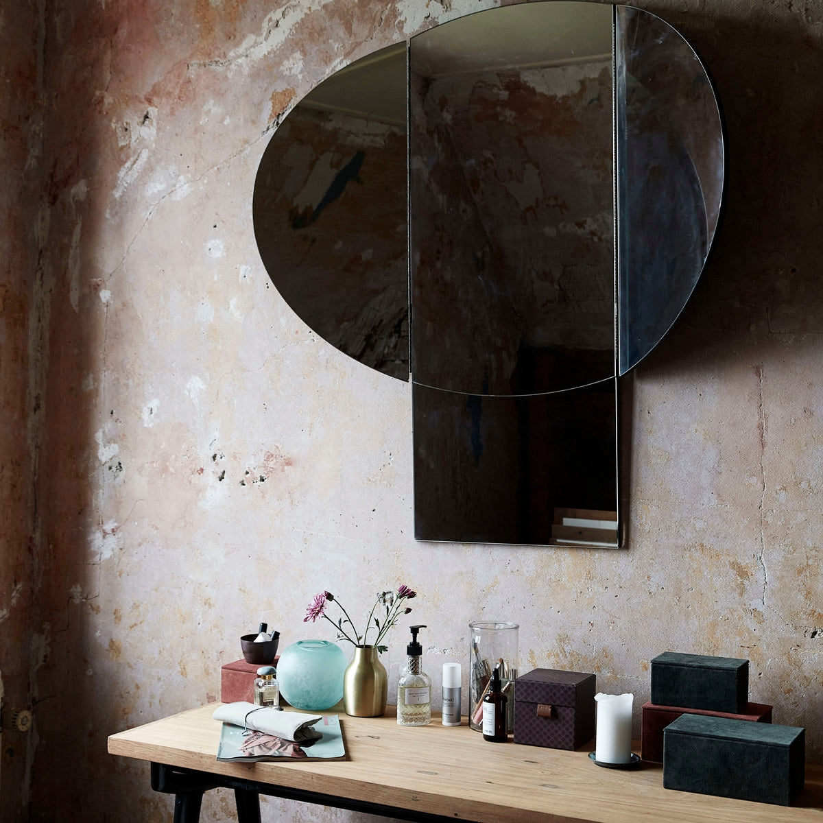 Invent new dimensions in your home with a new mirror. With Mushroom, you will get a stylish and decorative mirror that is shaped as a mushroom. The sides of the mirror unfold for you to see your reflection from multiple angles. The mirror is both practical, but also becomes a sculptural element on the wall as it creates more bright light and a sense of space. Use the mirror in your hallway or by your make-up table to create a unique and modern look in the home.