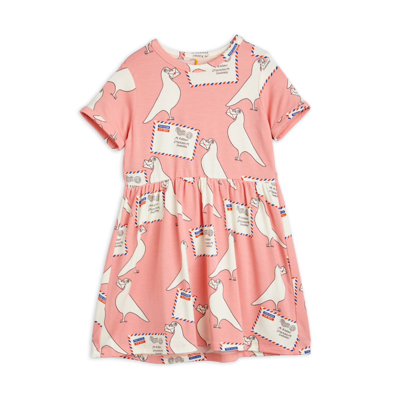 This super soft dress features an all over sweet pigeon post print. A little reminder to send a special someone a love note today!
