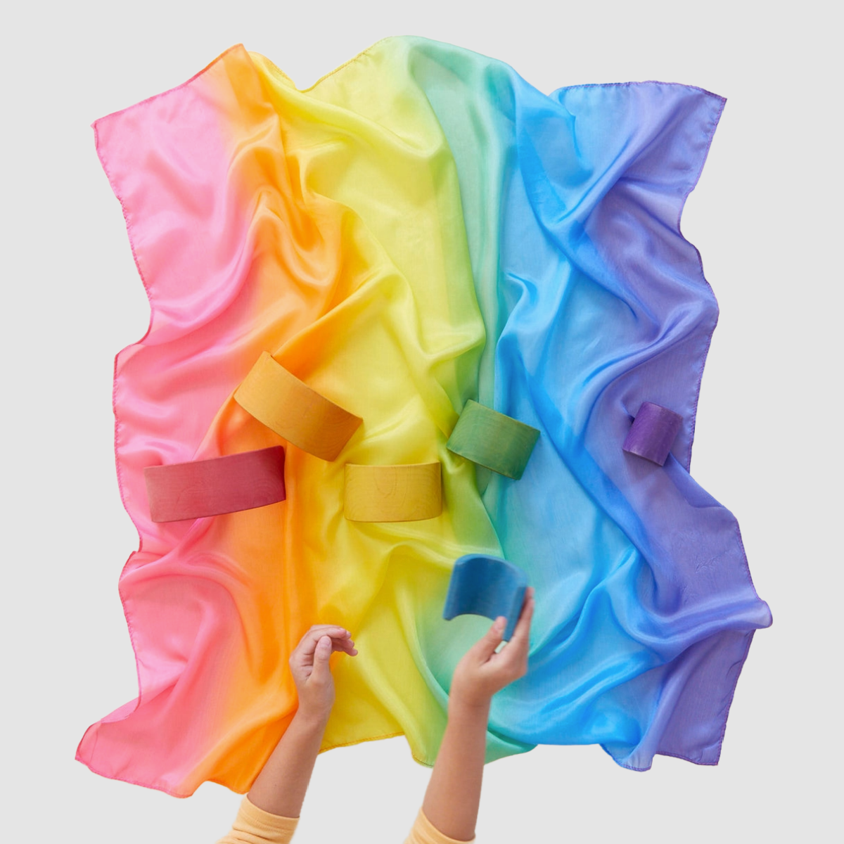 Open-ended play with Playsilks allows children to express their imagination and support their independence. Nourishing the senses with Playsilks gives the child an amazing tactile experience.