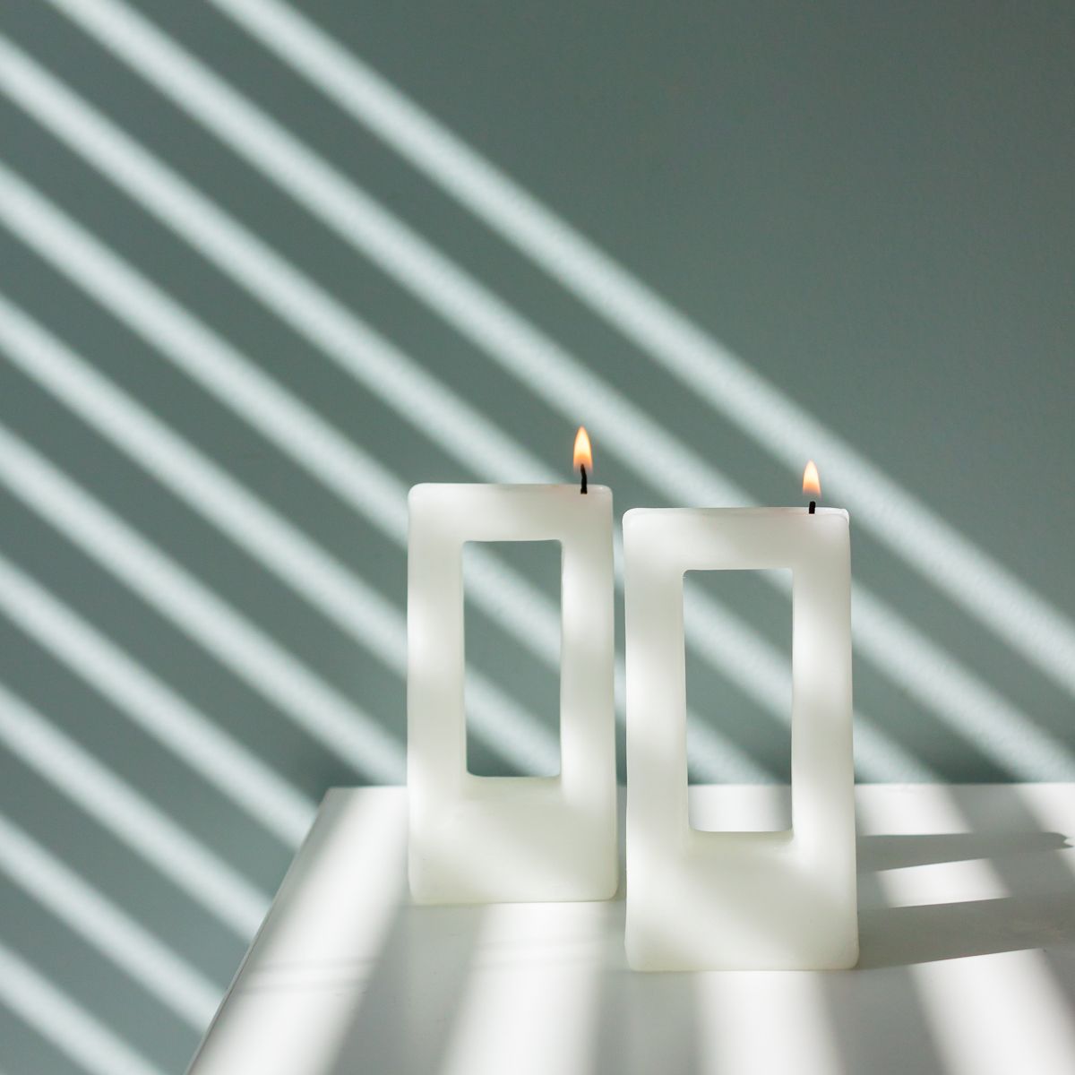 A unique candle that looks simple at first glance, but once you look again as the first wick begins to burn... the second wick ignites and creates a whole new design.