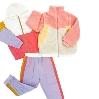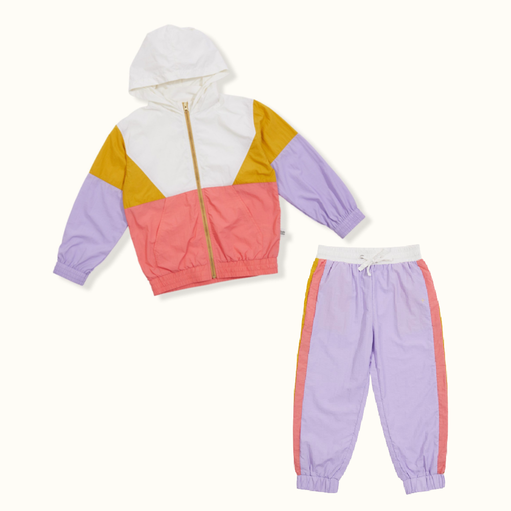 Giving us all the retro vibes from our own childhood, featuring a zip front and color block style.