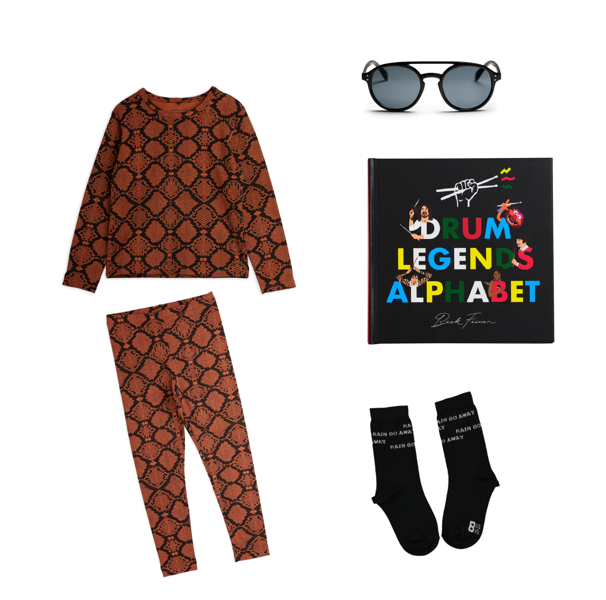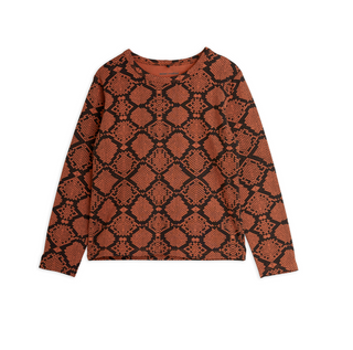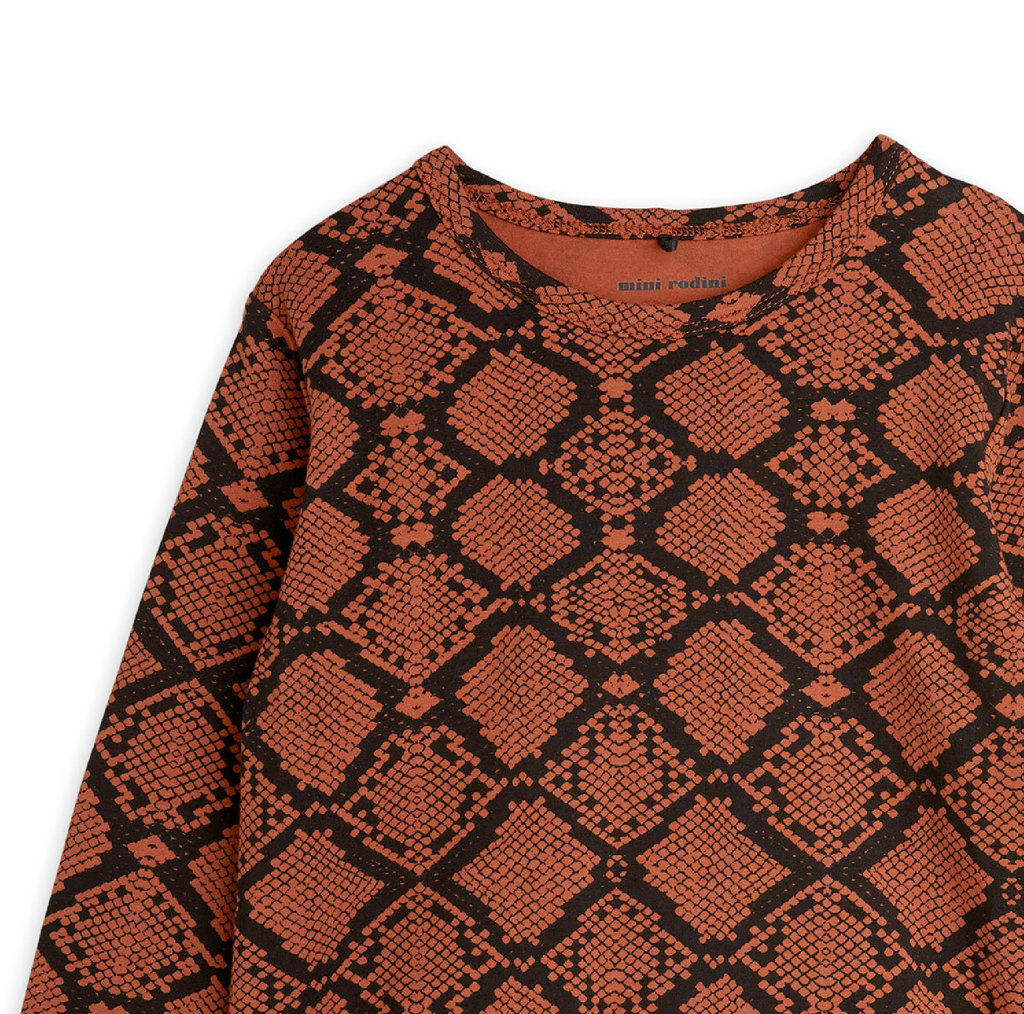 A chic take on animal print. This long sleeve tee features an all over snakeskin design in black on a brown base. Designed for boys and girls alike.