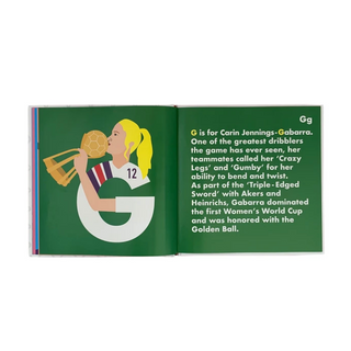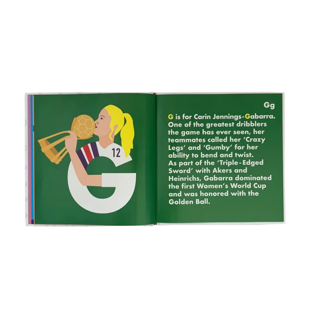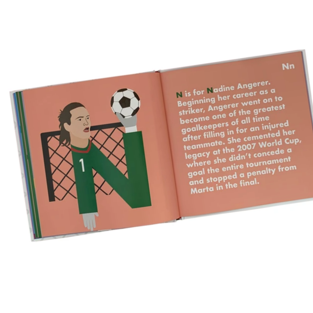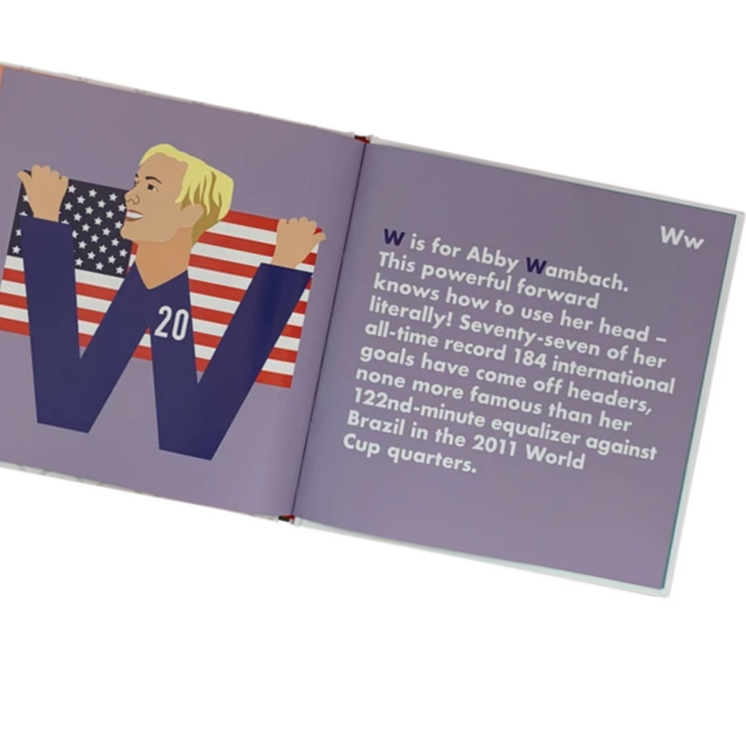 From Michelle Akers to Birgit Prinz, Lily Parr to Alex Morgan, Soccer Legends Alphabet – the Women’s edition, celebrates a collection of fierce female players who have shaped the modern game. Beautifully crafted and stunningly illustrated, this alphabet book is sure to inspire the next generation of female soccer legends.