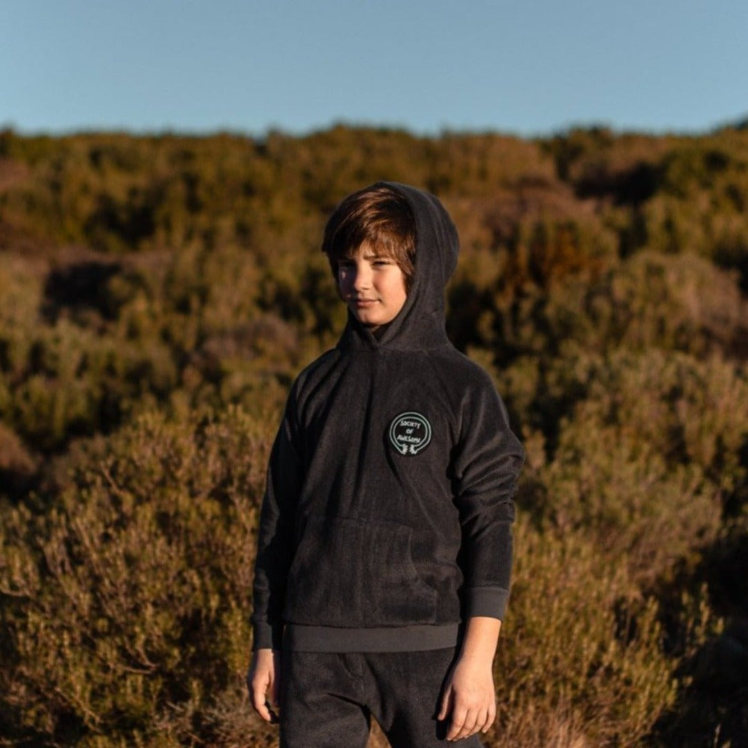 An ultra rad and cozy hooded sweatshirt in terry featuring a Society of Awesome patch.