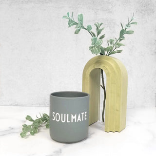 Designed in the finest ultra-matt glazed porcelain with SOULMATE engraved on one side. The perfect gift idea for your loved ones for birthday, Valentine's Day, every day. Use it as an every day mug, vase, candleholder... any way you choose it'll be a beautiful piece!