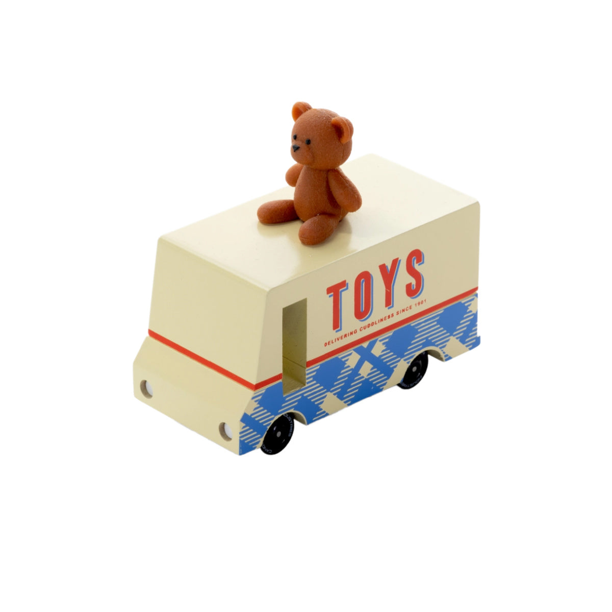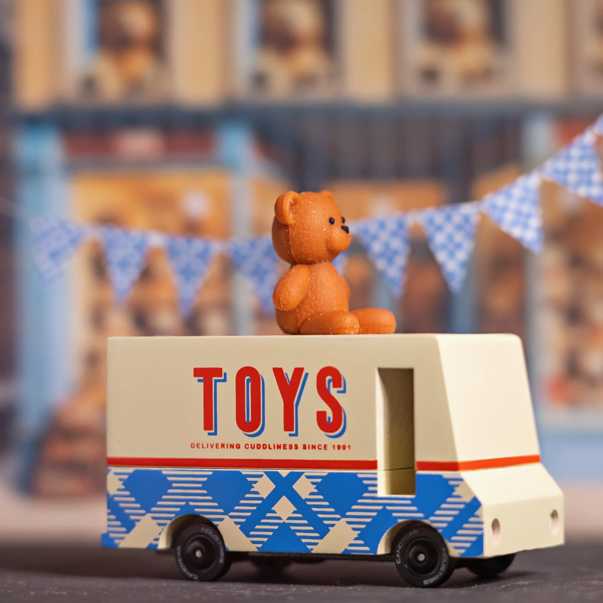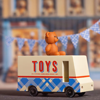 Teddy and the toy makers are going door-to-door, spreading joy in classic Candycar® Van form. The teddy bear topper is made from food-grade silicone and the van is made from solid beechwood with a diecast base. Safe for ages 3 and up.