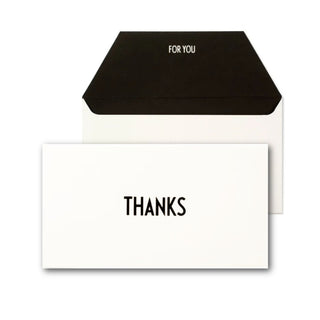 A modern minimalist blank greeting card featuring the iconic Arne Jacobsen typography that we adore. The interior is blank on horizontal cardstock with an envelope that opens up to a black interior with a "FOR YOU" greeting.