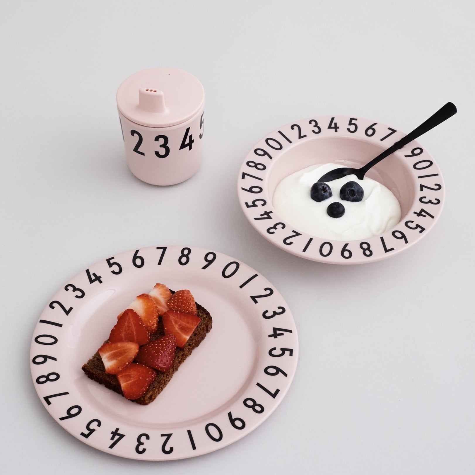 A playful melamine kids size set featuring our favorite Arne Jacobsen typography. Including a plate, a deep plate and a cup. Comes in a nice gift box.