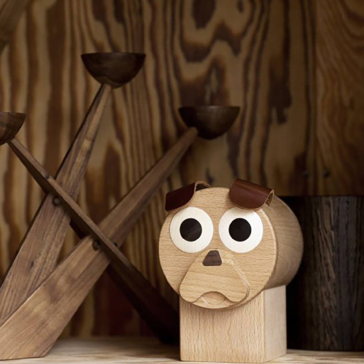 Tinder Dog is an adorable piggy bank and watchdog who takes good care of your spare coins. Designed by Jesper Wolff, the Tinder Dog got its name from Hans Christian Andersen’s classic fairy tale The Tinderbox. Made of beech, maple and walnut with leather ears and tail, the Tinder Dog brings joy to both children and adults.