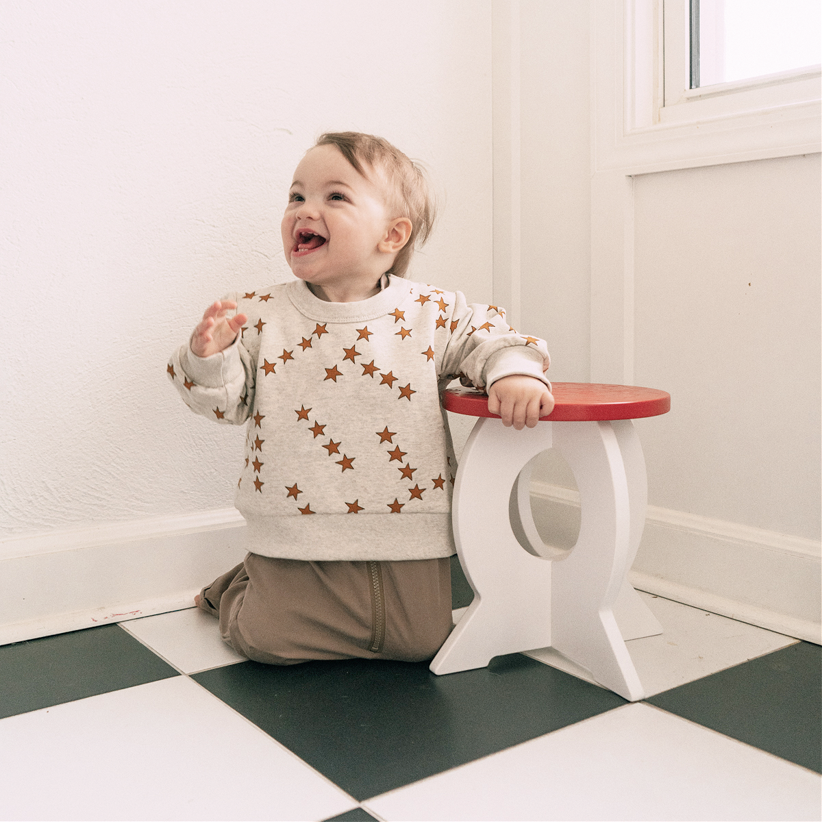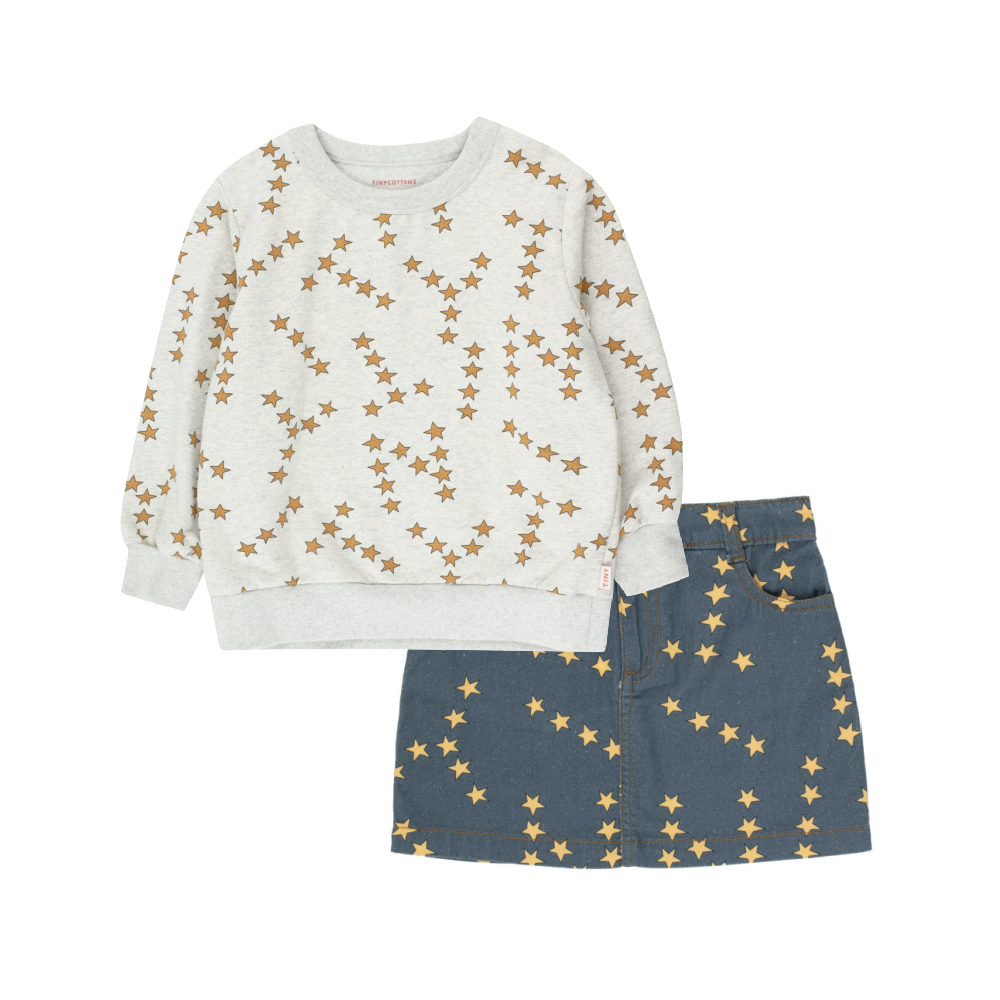 This sweatshirt is crafted from a soft and stretchy blend of 95% pima cotton and 5% elastane, this comfy blue grey sweatshirt features long sleeves and a round neckline. Featuring a fun allover stars print, perfect for all!