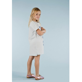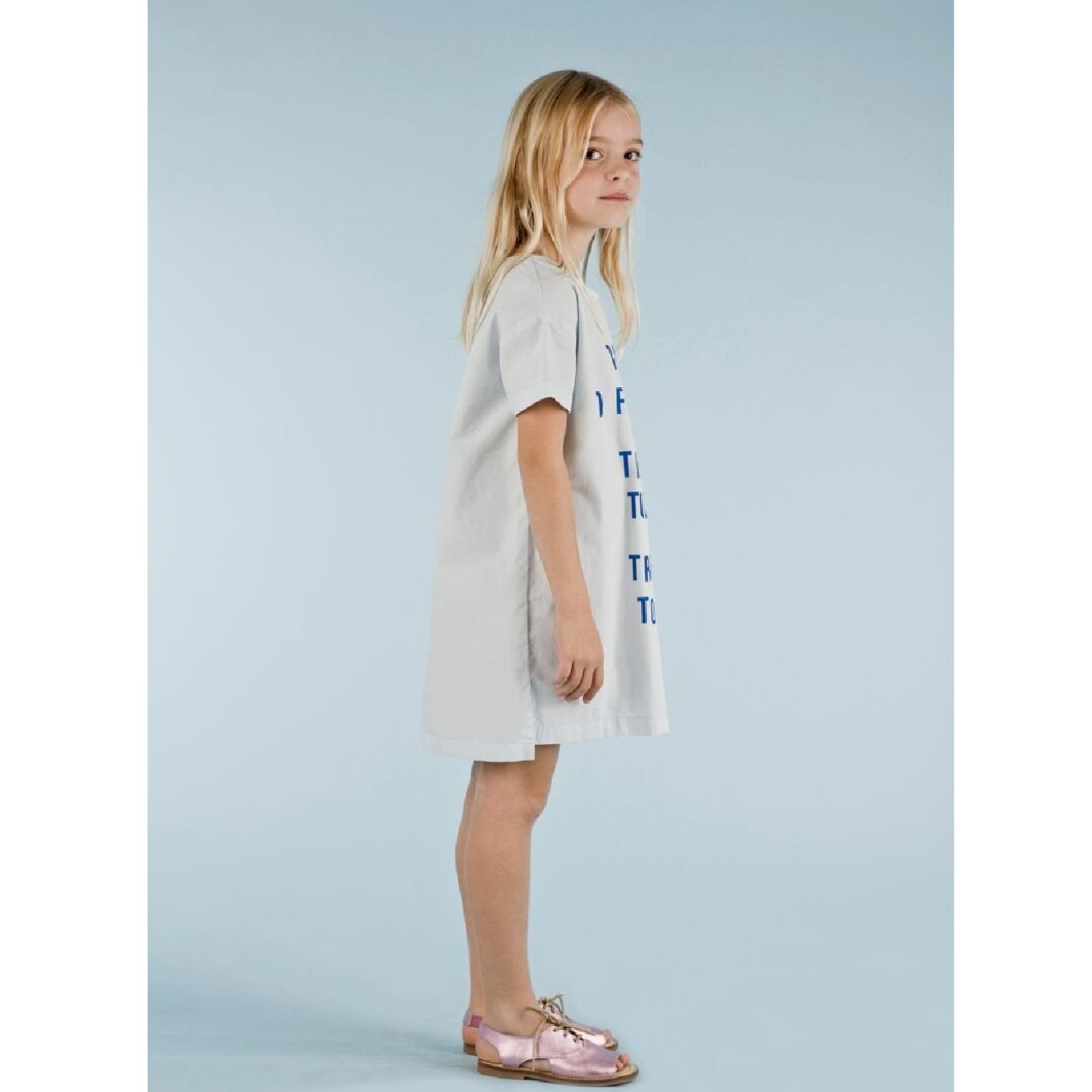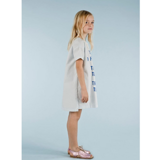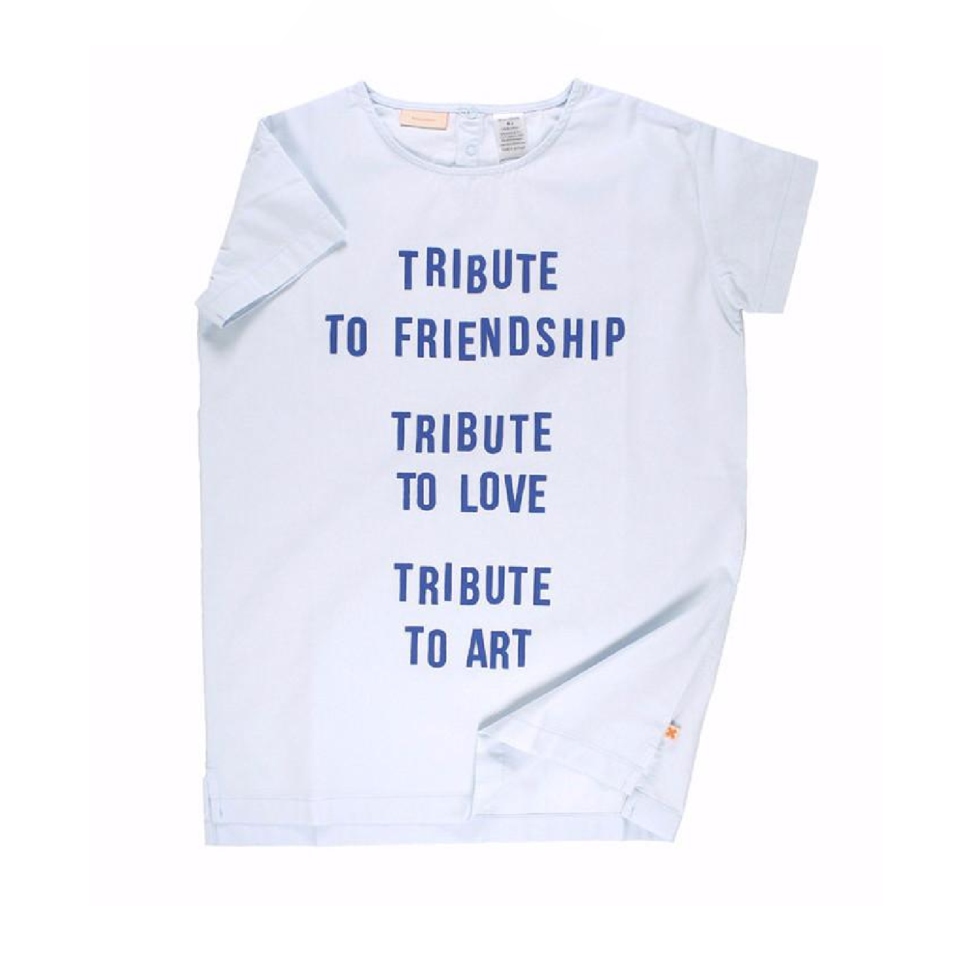 A relaxed fit cotton tunic with a light blue base and blue text. Rock as a dress or tunic with leggings.