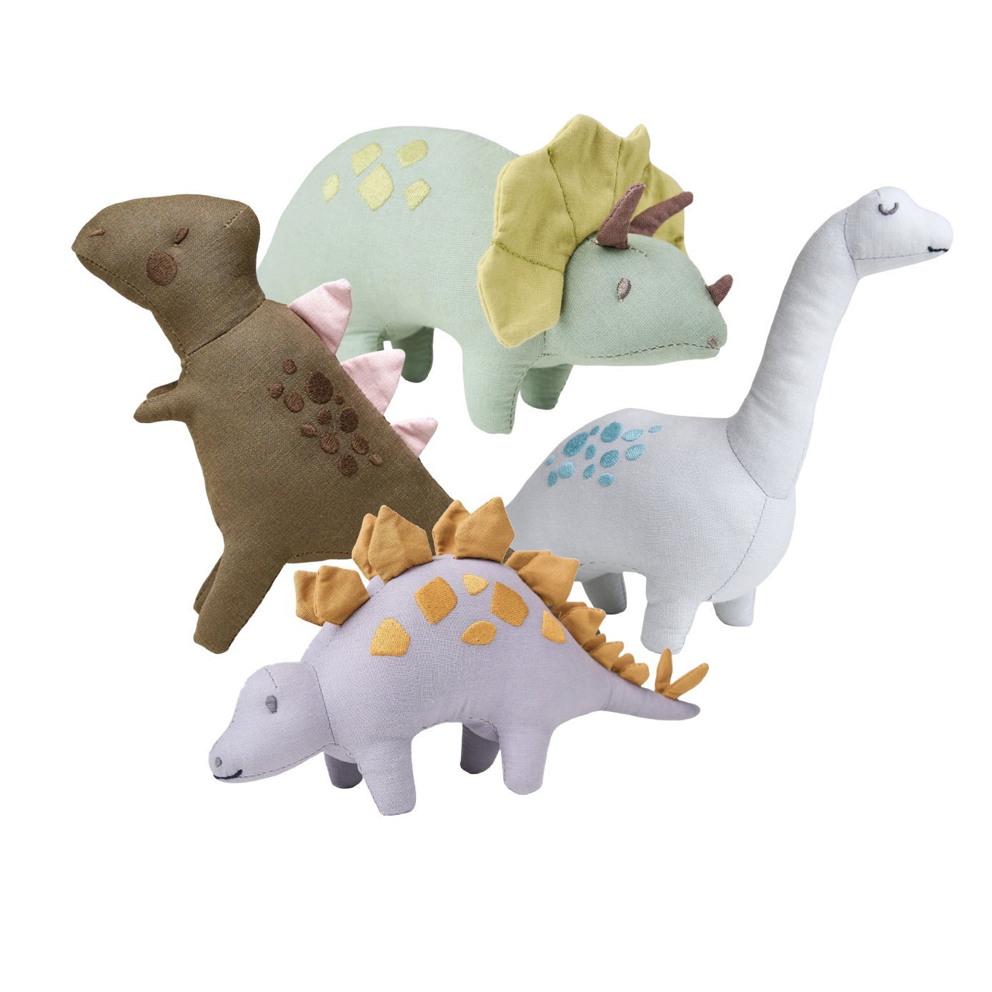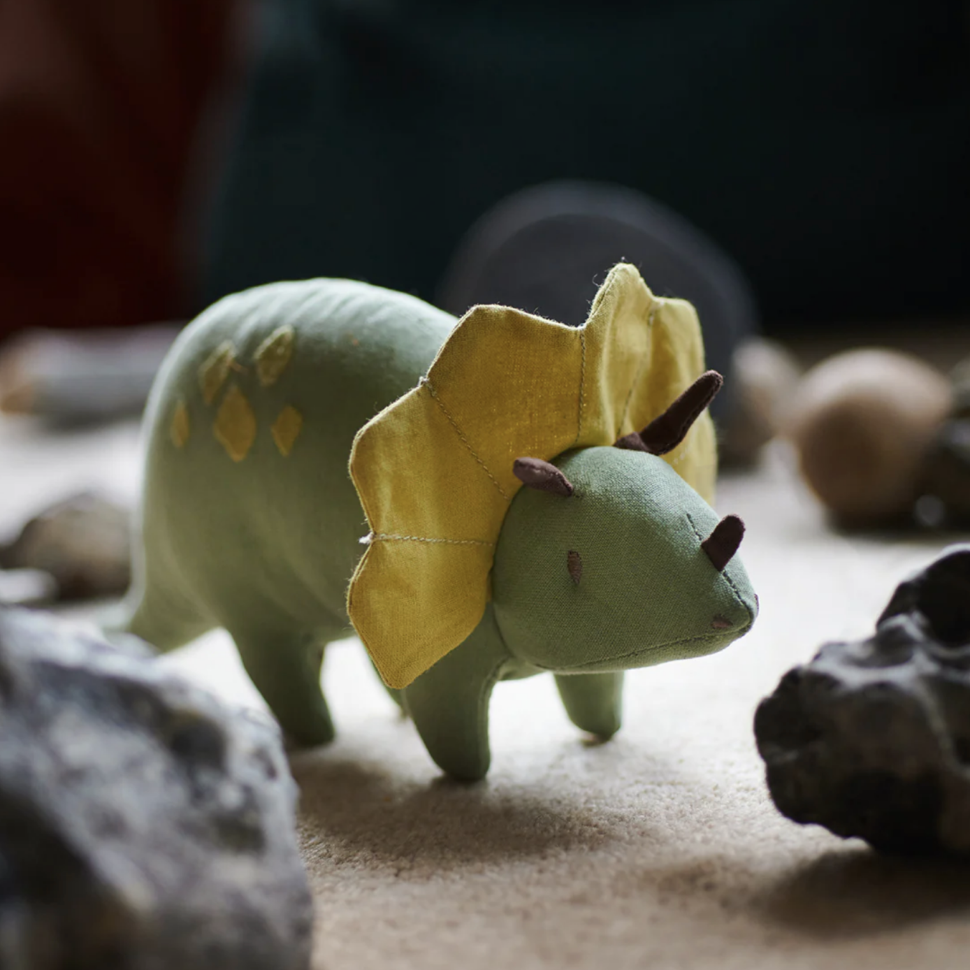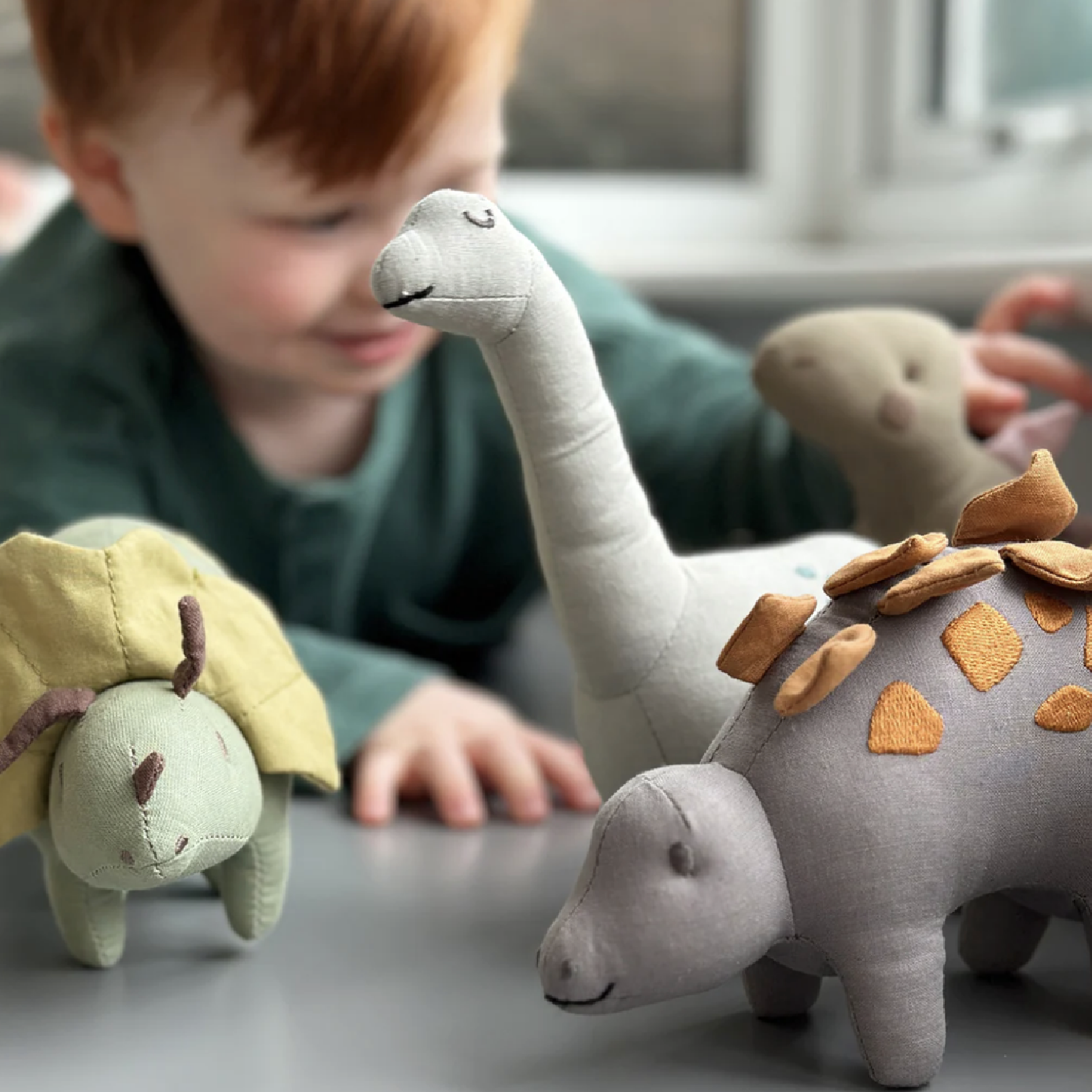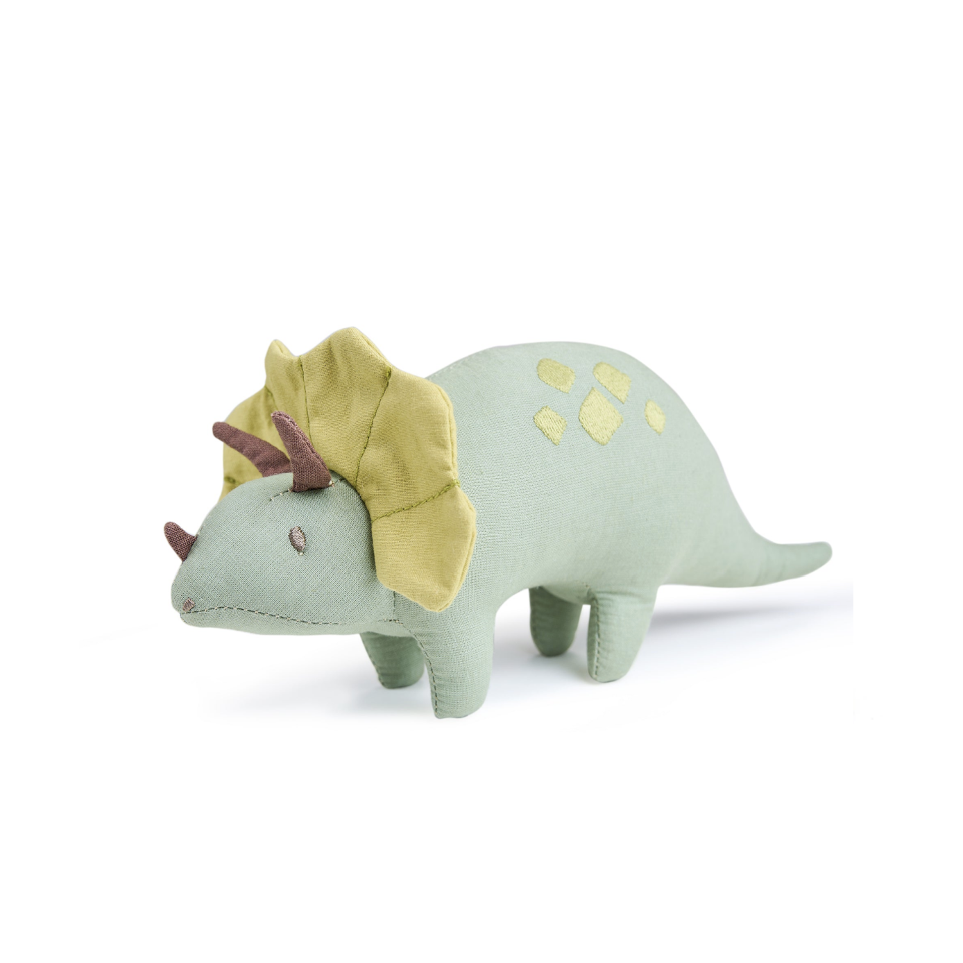 This adorable Triceratops dinosaur toy is a perfect gift for all children, finished in natural linen fabrics of the highest quality. A cuddly soft toy is a beautiful addition to a nursery and also supports important language and story-telling development with children.