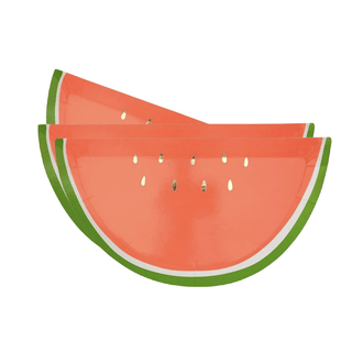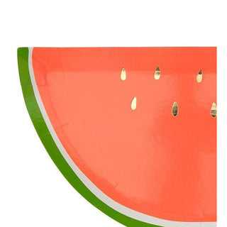 This brightly colored watermelon plate, with brilliant gold detail, looks sweet enough to eat! Perfect to add a summery touch to a party anytime of the year.