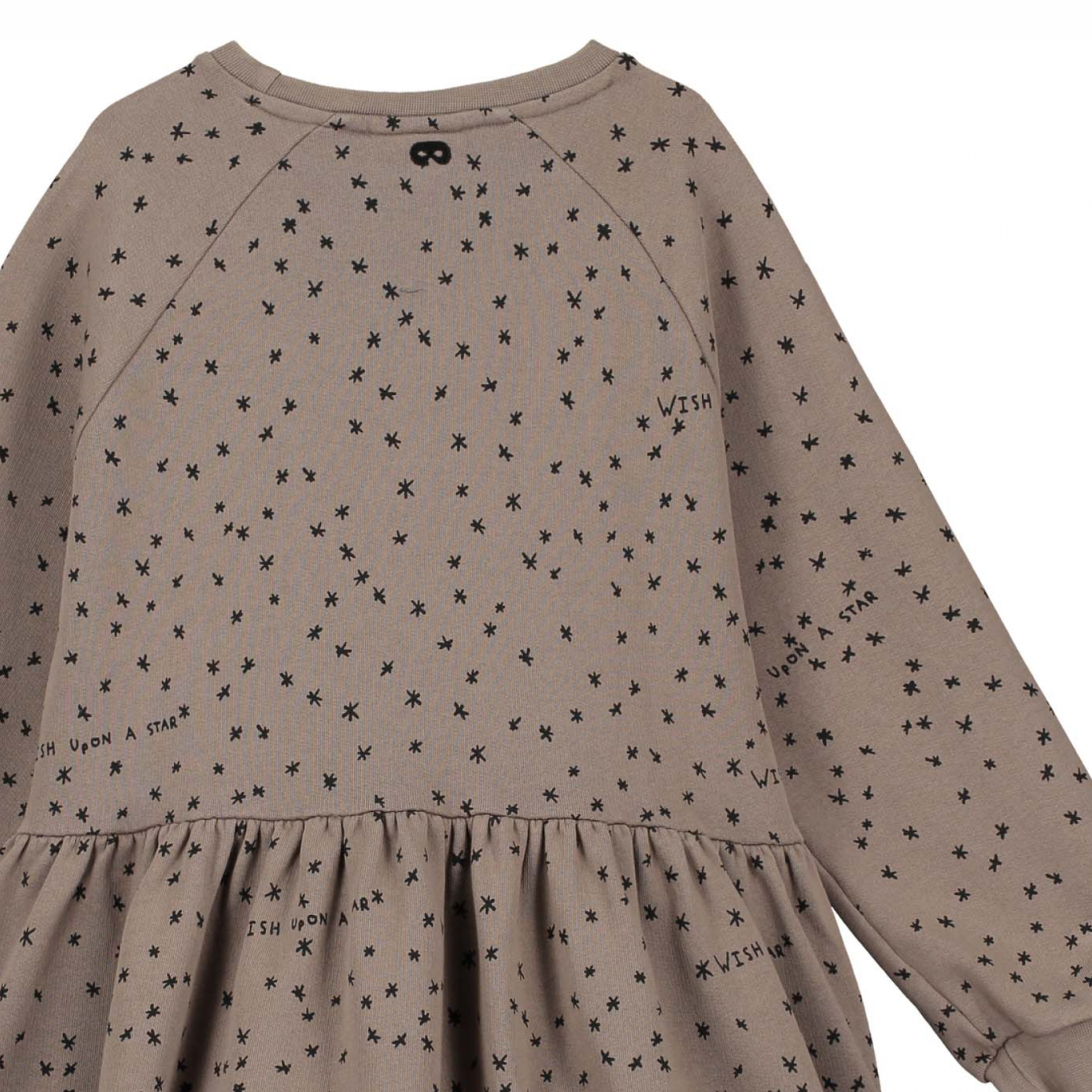 A soft and playful, relaxed fit dress featuring a raglan sleeve with an all over unique galaxy design on a washed brown base. Rock with a pair of tights and a jacket to complete the look!